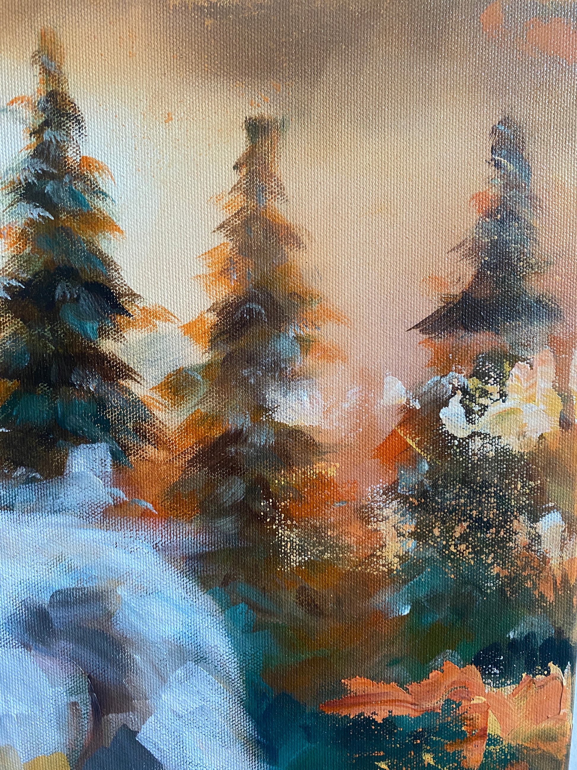 Gemalt mit hochwertigen Acrylfarben auf Leinwand auf Keilrahmen (2 cm tief), die Seiten einfarbig bemalt. Satin-Firnis verstärkt die Farbtiefe und verleiht einen sanften Glanz. Versand inklusive.