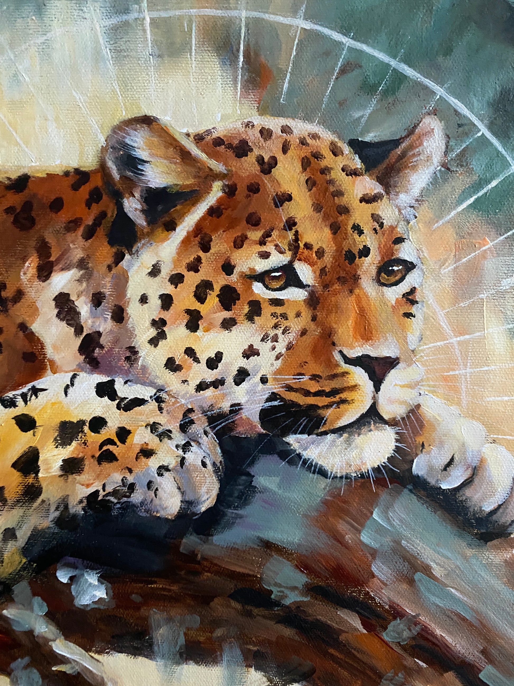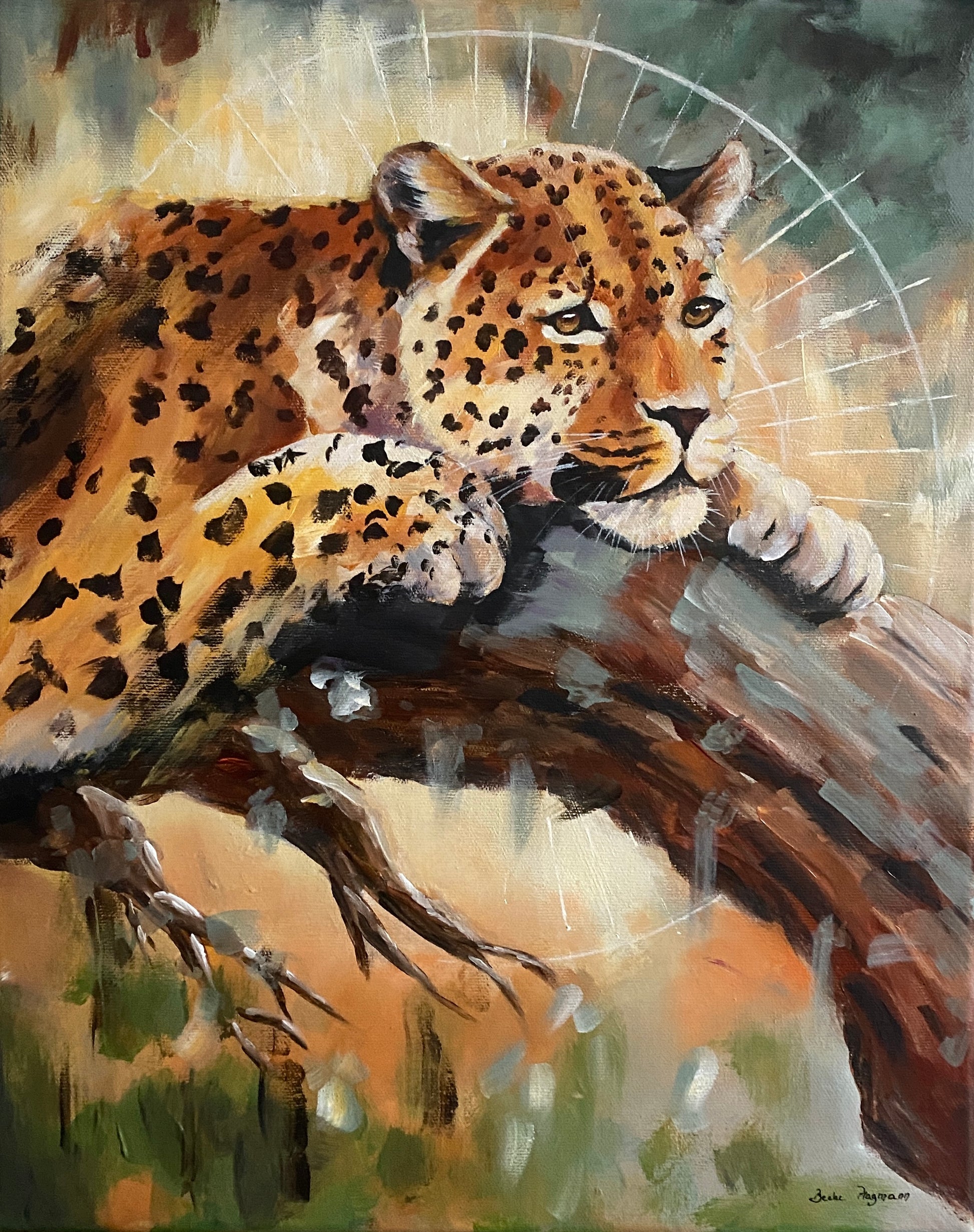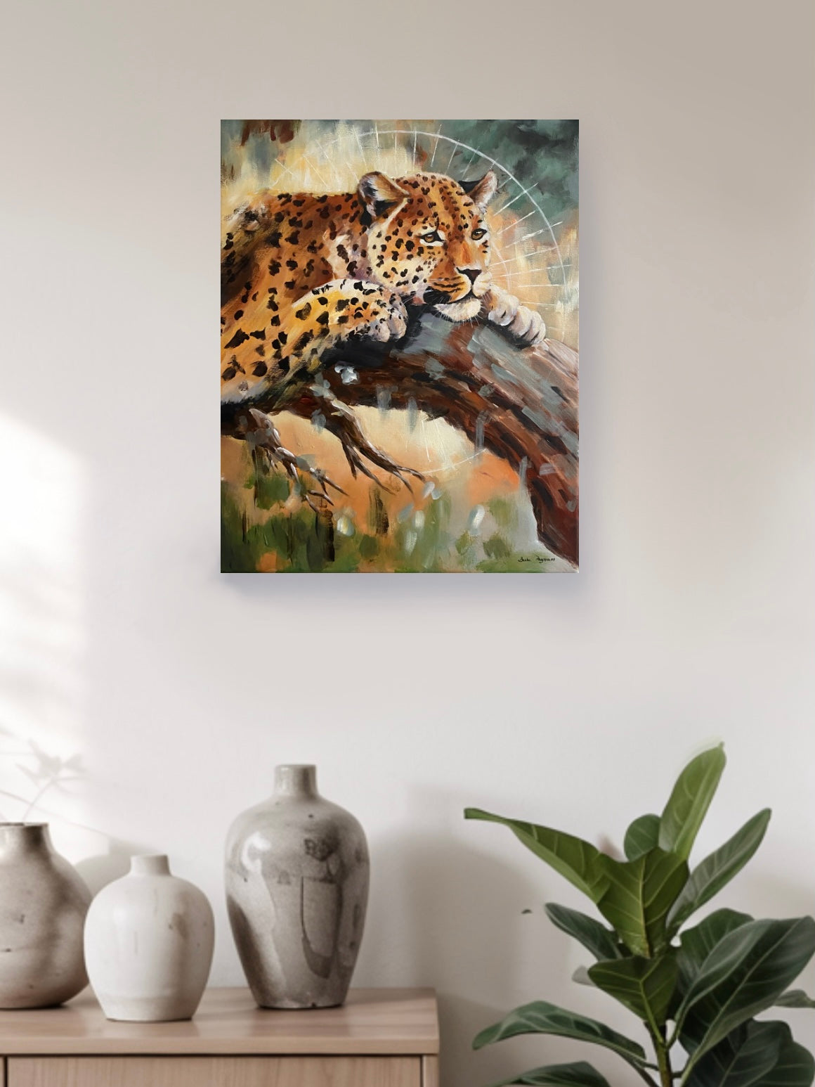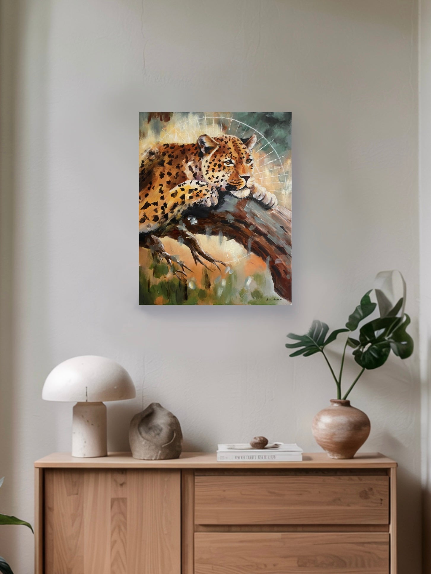 Dieser Leopard ruht auf einem Ast – gelassen, wachsam, ganz bei sich. Es ist kein Moment der Schwäche, sondern einer stillen Stärke. Ein Innehalten zwischen Atemzügen.